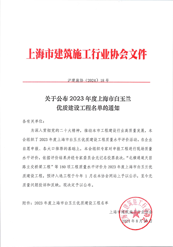 附件:2023年度上海市白玉兰优质建设工程名单